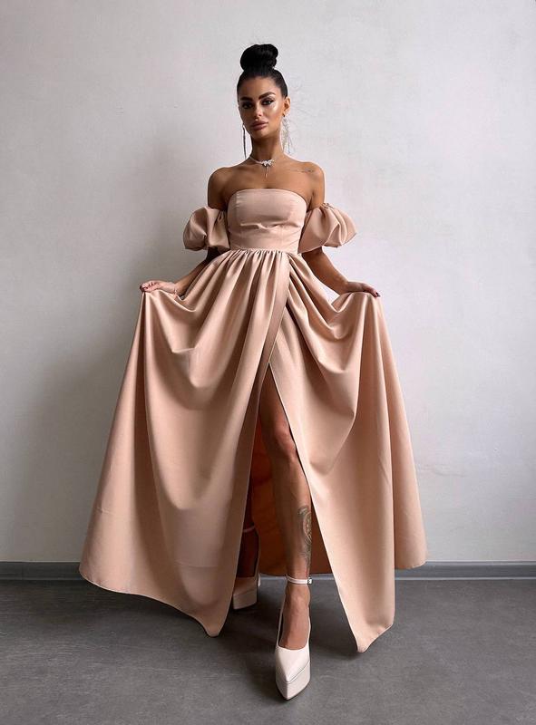 Изысканное платье макси с объемными рукавами, длинное платье с разрезом на выпускной