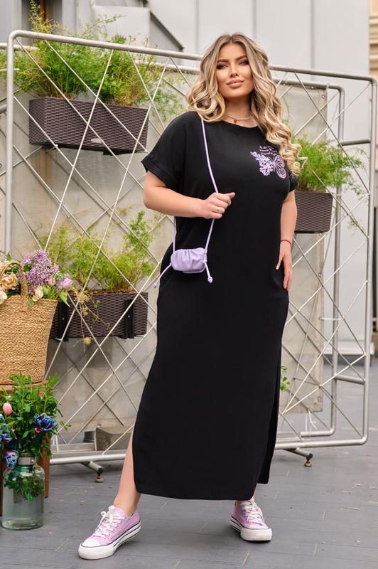 Сукня. Мод: 456 Стильное платье бохо из мягкой жатки с прорезными карманами по швам, дополненное аппликацией на груди, по бокам по низу разрезы Тканина: жатка Размер: 48-50, 52-54, 56-58 Цвет: черный, кирпич, фисташка Длина батал (48-50, 52-54, 56-58): *Сукня - 133 см., * Рукав от точки шеи - 29 см. Модель свободного кроя - ориентировочные параметры: р.48-50 ОГ-ОТ-ОС: 106-88-110 р.52-54 ОГ-ОТ-ОС: 114-96-118 р.56-58 ОГ-ОТ-ОС: 122-106-124 бел 750.00 грн