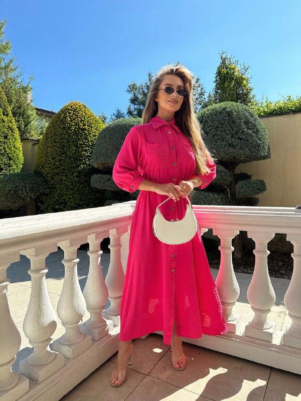 Тканина: креп-жатка Колір: блакитний, малина Розміри: S, M, L, XL Опис: Сукня-сорочка максі довжини з широкою гумкою на поясі і вільними рукавами довжиною 3/4. (Заміри вказані на параметри) rem