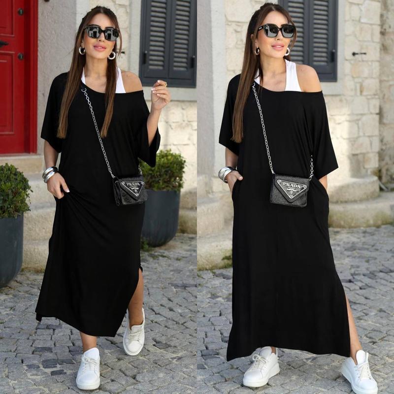 СУПЕР ЦІНА 🔥🔥🔥🔥🔥 Стильный комплект двойка ✨✨✨✨✨✨✨✨✨✨ Платье легкое, дышит, имеет разрезы по бокам. Майка сделана из турецкого кулира! Качество супер 🛍️ Можно носить отдельно под любой низ. Мод.314 Цена 🇺🇦 1300 грн Размер : 48-52,54-58 Ткань: трикотаж +кулир турецкий Цвет: черный