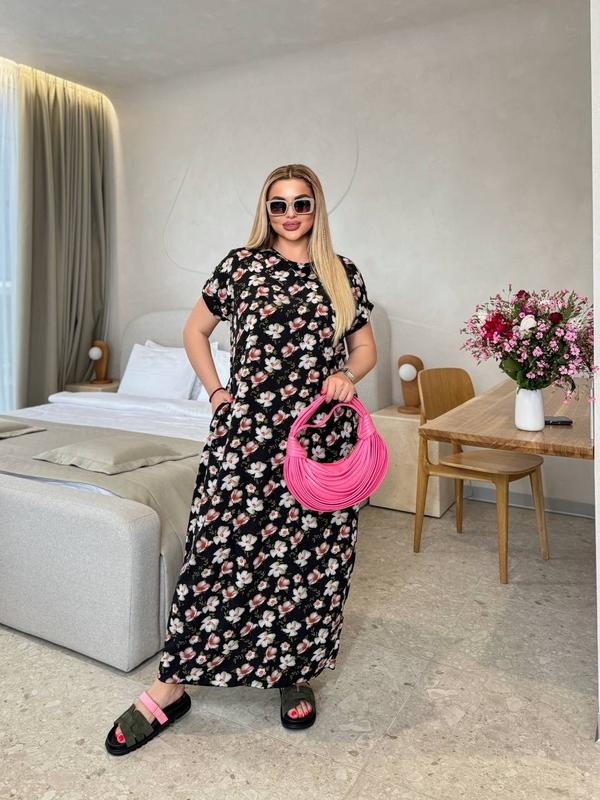 🌺НОВИНКА🌺 Сукня Длинное платье, свободного стиля 🔥 Мод.335 Цена 970 грн Тканина Принтований софт Размеры 50-52,54-56-58-60 Цвета: Черный, Розовый, Бирюзовый. Хороший Качество, отличный пошив!! ✏️Замеры✏️ 50-52 ОГ 120, От-120, Об-130 длина 130 см 54-56 Ог 125 см, От-125, Об-140 длина 130 см 58-60 Ог 130 см, От-130 длина 150 см