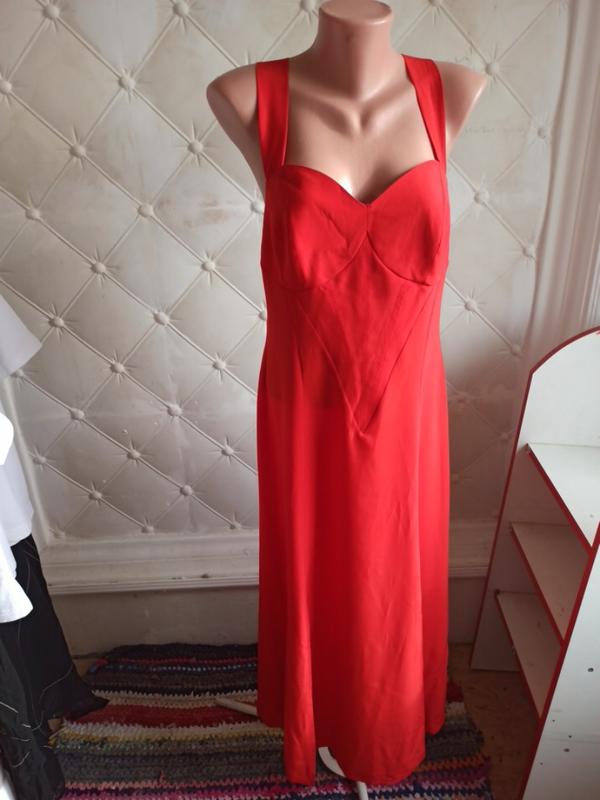 Нежная ткань, впереди росперки, на комди пошито с имитацией корсета, пог 43 см, пот 41 см., поб 52 см., длина изделия 135(около шлейков)