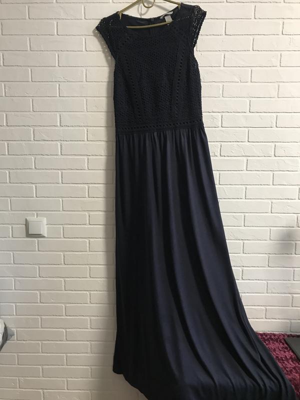 Длинное темно синее летнее платье S размера, спереди - ажурная ткань, сзади застегивается на скрытую молнию. Замеры: ширина по талии 37 см, ПОГ 45 см, длина от талии до низа 112 см, общая длина платья 154 см. Стан отлично!