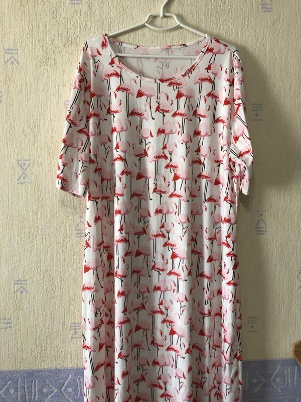 Легкое удлиненное летнее платье с прекрасным принтом Фламинго! Длинна 1,35 пог 63, поб65, рукав с плечом 46