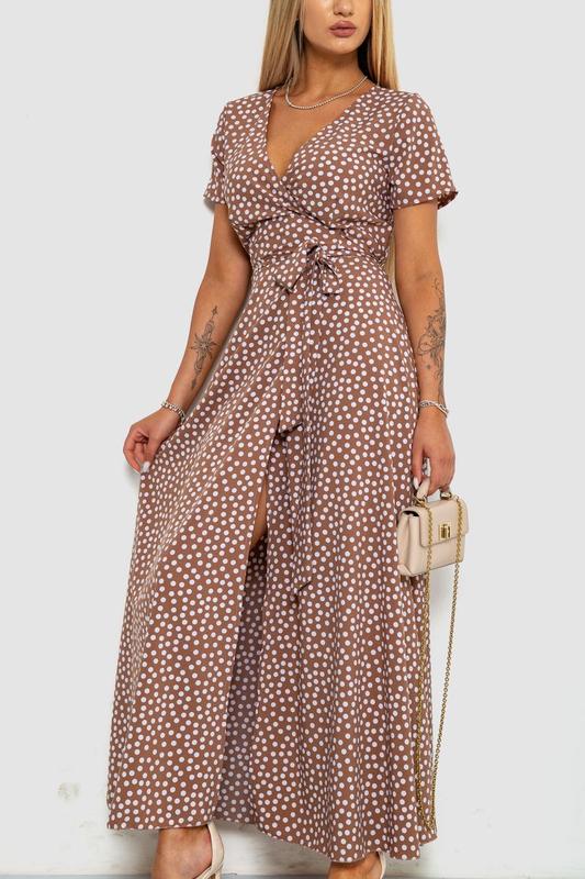 Длинное платье на запах с поясом в горох