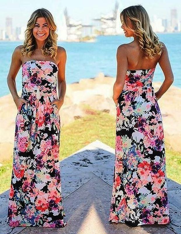 ❤ легкое яркое платье бандо сарафан макси не мнется