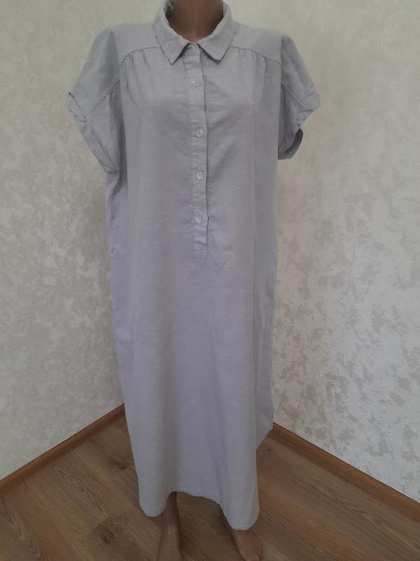 Актуальное прямое свободное миди платье кафтан с льном peter alexander