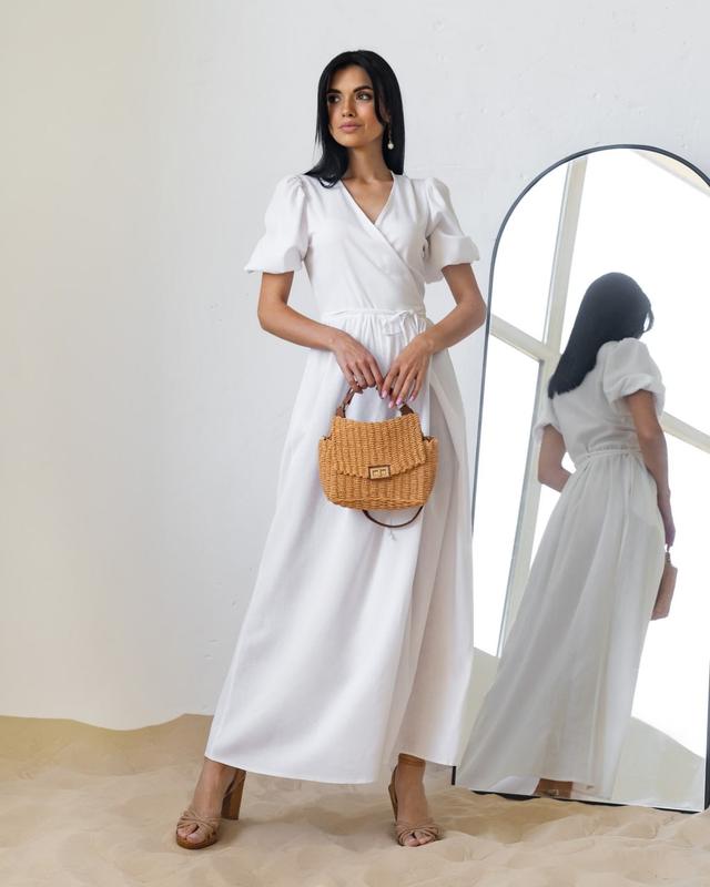 Жіноча сукня лляна на запах довга максі з коротким рукавом літня плаття амелія