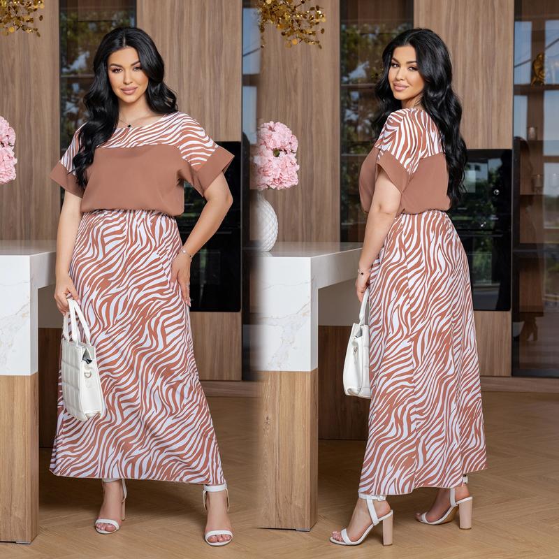 Новинка 🍓🍓🍓🍓🍓 Костюм двойка Модель № 7534-1 Цена: 540 грн. 🍓🍓🍓КАЧЕСТВО ОТМЕНЕНИЯ Размер : 46-48; 50-52; 54-56; 58-60 Тканина : софт НЕТ РАЗБОТАТЕЛЬНОСТИ Длина кофты : 60 см. Длина рукава : 27 см. (от горловины ) Длина юбки : 100 см. (пояс на резинке ) Практичный костюм юбка покроя трапеция, пояс на резинке. Кофта прямого покроя, комбинированная. Ткань хорошего качества, износостойкая, не леняет, не кашлатится, приятная на ощупь, не тянется.
