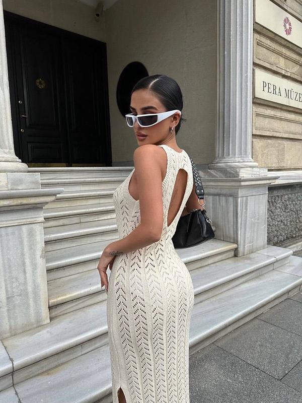 Актуальные ажурные платья сбоку с разрезами Размер единый 42/44 Черный и молочный Полуобхват грудь 33 - 43 см Длина 140 см Состав : 100% cotton