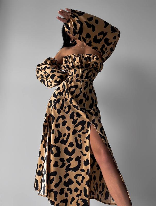 Фото реал 📸 Наш собственный контент, все правая на фото,лежат нам ❗️❗️❗️ Платье в стиле «Селенка»😘😘😘 Модель : 347 Размер : универсальный (42-46) Тканина : супер софт Цвет: бежево-черный,крупный принт Лео новая Цена:675грн Отделка - сзади затягивается с помощью, завязок Спинка (верх), на резинке Рукава, низ,верх,на резинке Замеры Длина по спинке (центр)- 102 см ОТ-от 60 до 80 см Длина рукава - 55 см Разрезы - 51 см Рост модели 165 см 🏹🏹🏹 ОГ - 80 см 💞 ОТ - 63 см 💞 ОС - 88 см 💞 код20-2055(ТЯц)