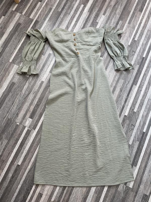 Платье миди с разрезом Оливкового цвета Красиво садится по талии Размер s