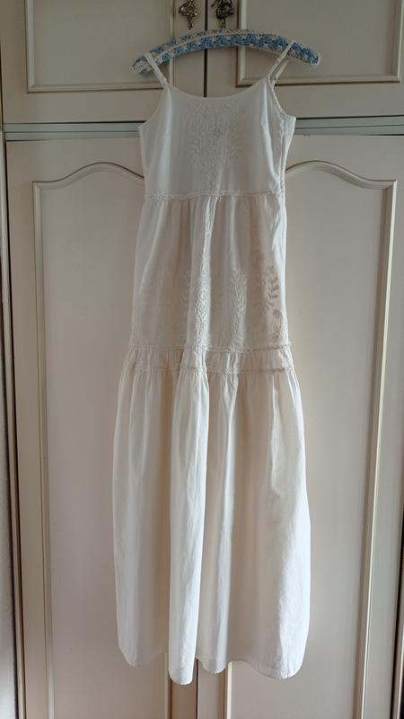 Очень нежное длинное платье на Дюймовочке, тоненькое высокое женское. Вышитая вискозой, длинная-длинная, невероятная просто. Приятный цвет, длина погремушек регулируется. Состояние безупречное, никаких нюансов. Была совсем новая, но приобрела в том году, то выстила. Размер - 34, XS.