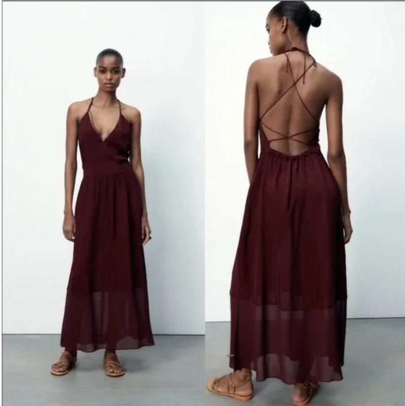 Невероятное платье ZARA Цвет -Марсал Состав- ВЕСКОЗА Размер-S,М ЗАМІРИ: НОТ-40СМ Длина юбки -93 см