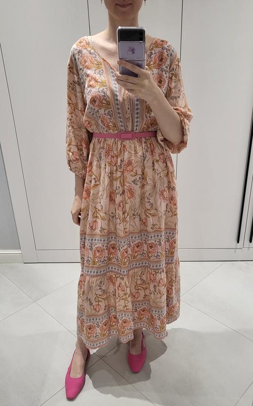 Платье макси, невероятно легкая ткань вискоза, размер XL, на фото одето на S с пояском. (в комплекте пояс не идет). длина: 126 см рукав: 52 см пог: 57 см талия: 82 см, резинка