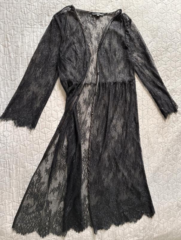 Шикарна прозора сукня вільного крою з ніжного мережива, на ґудзиках, стан ідеальний Параметри Талія напівобхват 44см (тягнеться) Груди напівобхват 48см (тягнеться) Довжина виробу 114см Рукав 53см Можна надягати як окремо, або на купальник на пляж, так і як кардиган на будь що- навіть з майкою та джинсами 😍