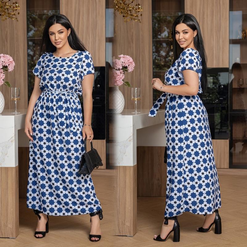 Размер: 46-48; 50-52; 54-56; 58-60 Тканина: софт Длина платья: 143 см. Длина рукава: 22 см. Стильное, длинное платье, с поясом из основной ткани, талия на резинке. Красивая ткань, приятная на ощупь, высокого качества, не скатывается. Пояс - корсет +50 грн