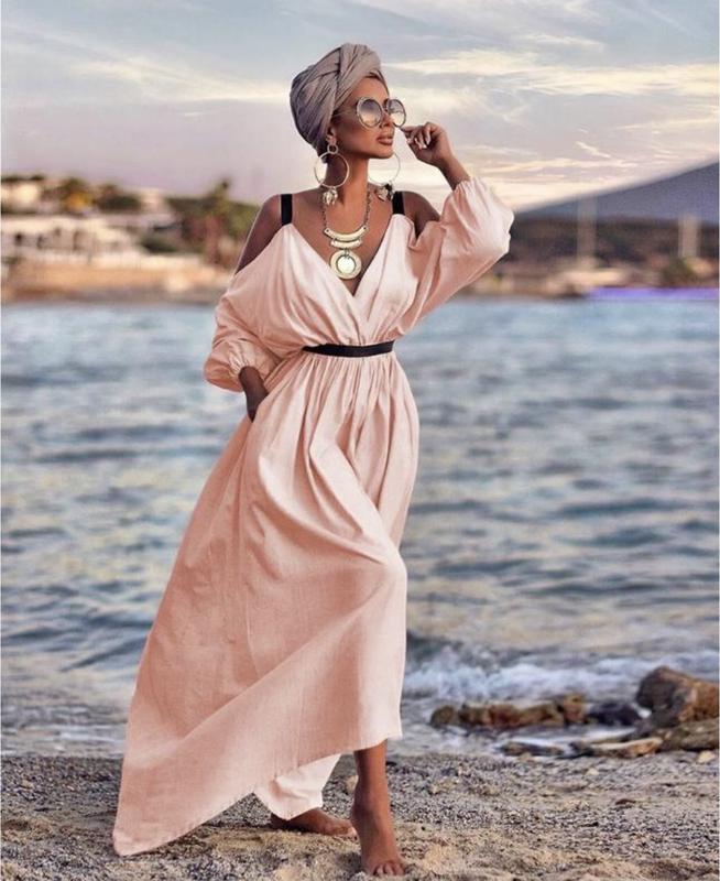 Тканина льон-габардин, пояс та бретелі репс. На талії и в манжетах резинка, пояс в комплекті Колір рожево-пудровий Розмір 48-52 Довжина виробу по спинці з бретелями 145 см, Заміри 48-52: ОГ 123 см, ОТ до 100см, ОБ 140 см. Оплата повна на карту, повернення немає При купівлі декількох речей доставка безкоштовно 📦 🚚