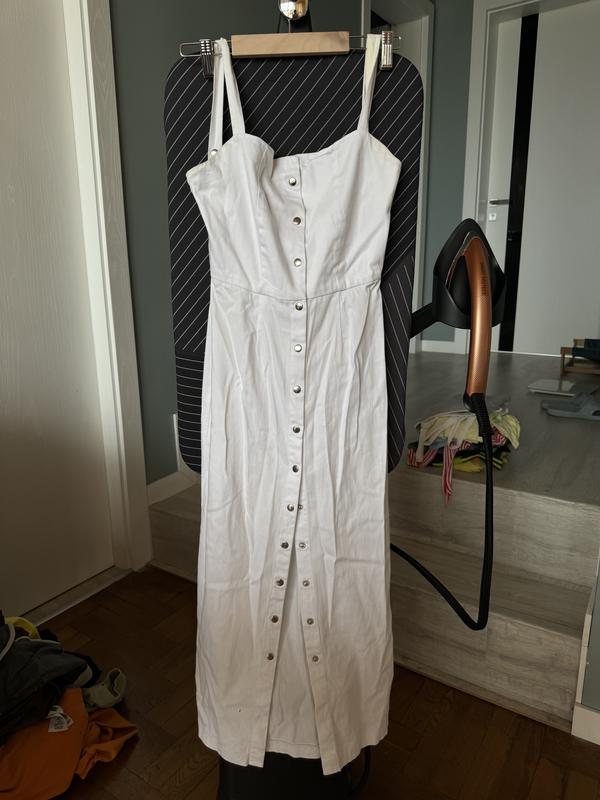 Сукня приталена. За счет пуговиц можно корректировать вырез на ножке. Есть пятна де подмышечник, не выстириваются. Высота (не учитывая бретели - 103 см)