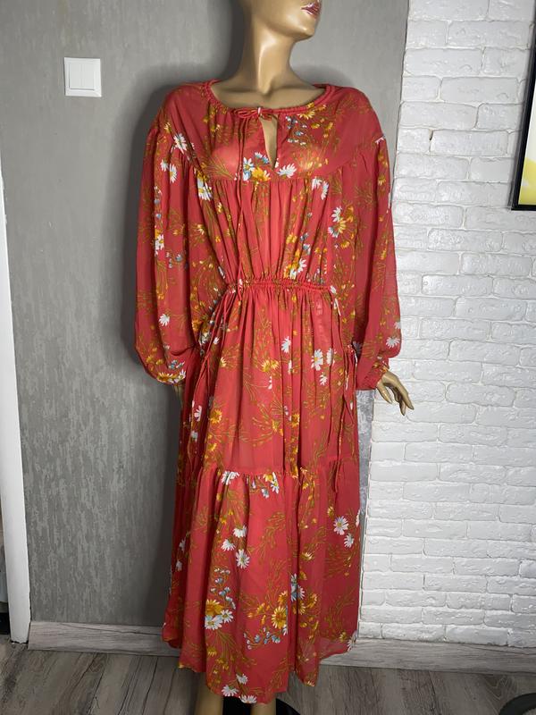 Длинное ярусное платье со стяжками платья с длинными объемными рукавами ASOS, XL