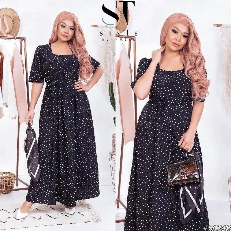 Р-ри 48-50, 52-54 Довжина-140см; довжина рукава-33см; Тканина не тягнеться Матеріал: Супер Софт Кольори- Чорний з білим горохом, Бузковий з білим горохом, Геометричний кольоровий принт, Позаду потайна блискавка (50см), в комплекті пояс з основної тканини вб