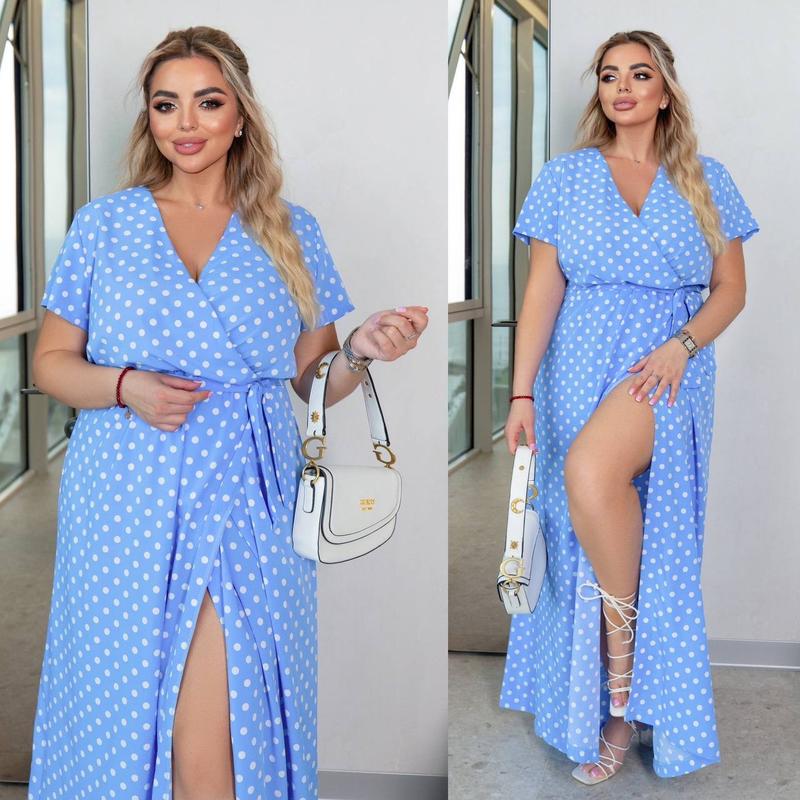 Неймовірно жіночна сукня з розрізом у грайливий горошок. Короткі рукави, глибокий V-подібний виріз, пришитий запах. Пояс у комплекті❤️ Сукня Ціна 1150 грн Розміри: 42-44 ;46-48 Розміри:50-52;54-56 Тканина: софт МОД #1241 Якість супер!!! Виміри на 1240/1241 42-44 Груди 100 Талія 80 (гума мах розтяжка) Стегна 130 (запах) Довжина 147 см 46-48 Груди 104 Талія 84 (гумка) Стегна 132 Довжина 147 50-52 Груди 112 Талія 90 (гумка) Стегна 136 Довжина 153 54-56 Груди 118 Талія 94(гумка) Стегна 140 Довжина 153