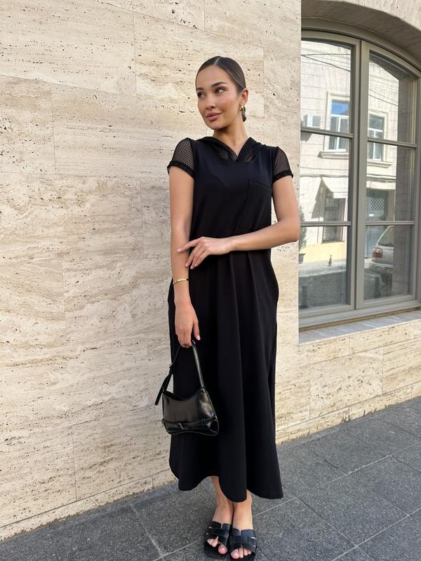 tev. 5261 ◽️Размер: 40-42, 44-46, 48-50, 52-54, 56-58, 60-62 ◽️Цвета: черный и беж. ◽️Материал: турецкий кулир. Легкая, нежная ткань, хорошо тянется. Рукава и капюшон - сетка. ▫️Размер бижать ближе к значениям выделенными красным цветом --------------------------------- На фото: Рост 168 см, 90/63/90. Размер платья 40-42. Рост 171 см, ОГ 110, ОБ 115. Размер платья 52-54.