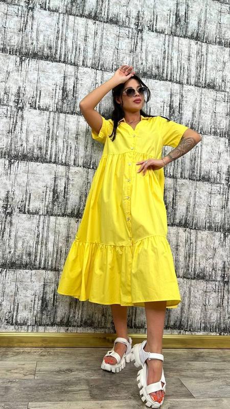 Платье в стиле Зара Модель: 0507 GR..18.06.во Размеры : 42-44,46-48,50-52,54-56 Тканина : софт. Легкое летнее платье в стиле Зара. Цвет: черный, малина, желтый, трава, оранж. 42-44 Об. грудь -95 см Об. талии-90 см Об. бёдер-130 см Дл.изделия-120 см Дл.рукава-22 см 46-48 Об. груди -105 см Об. талии-100 см Об. бёдер-132 см Дл.изделия-121 см Дл.рукава-23 см 50-52 Об. грудь -115 см Об. талии-110 см Об. бёдер-134 см Дл.изделия-122см Дл.рукава-24 см 54-56 Об. Груди-125 см Об. талии -120 см Об. бёдер -136 см Дл. изделия -123см Дл. рукава -25 см