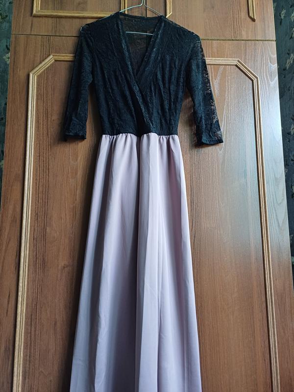 Длина 146. Грудь в нерустящем состоянии 74, тянутся до 92. Перед на подкладке. Спина кружевная, просвечивает. Талия на резинке. Есть дополнительно пояс в цвет юбки.