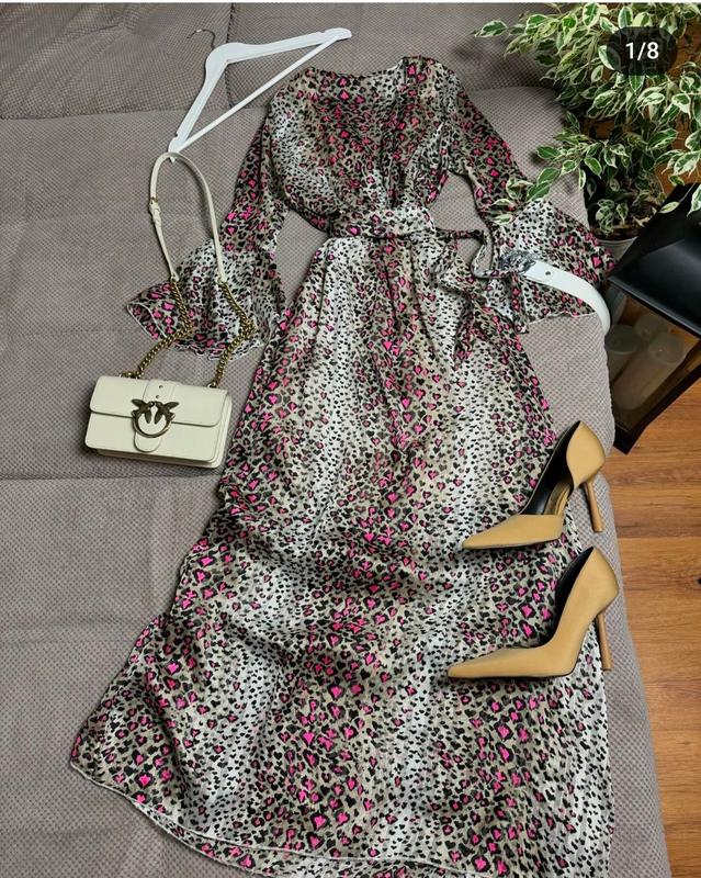 💗🔥Франция... стильная... эффектное... невероятное красивое платье в самый актуальный принт... изюминка в твоем гардеробе... акцентированная талия... безупречно сидит по фигуре... качество 🔥 S Пог 42/44 см Пояс резинка 30/35 см Поб свободного кроя Длина 145 см