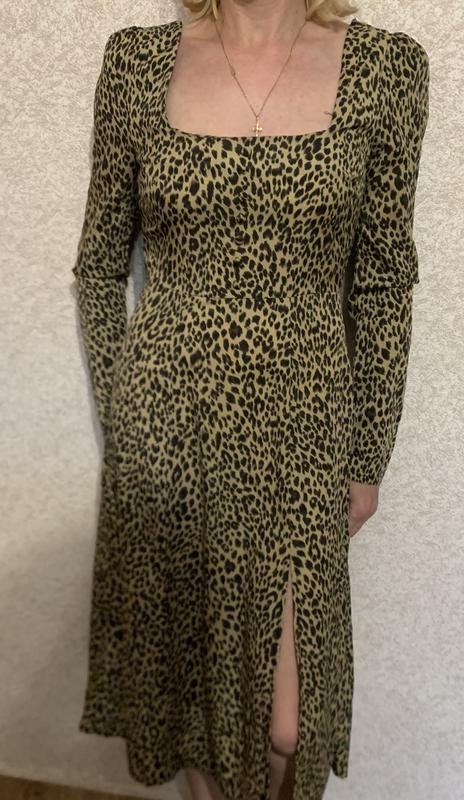 Платье с леопардовым принтом, имеет разрез на ножке, подойдет на размер S, длина макси