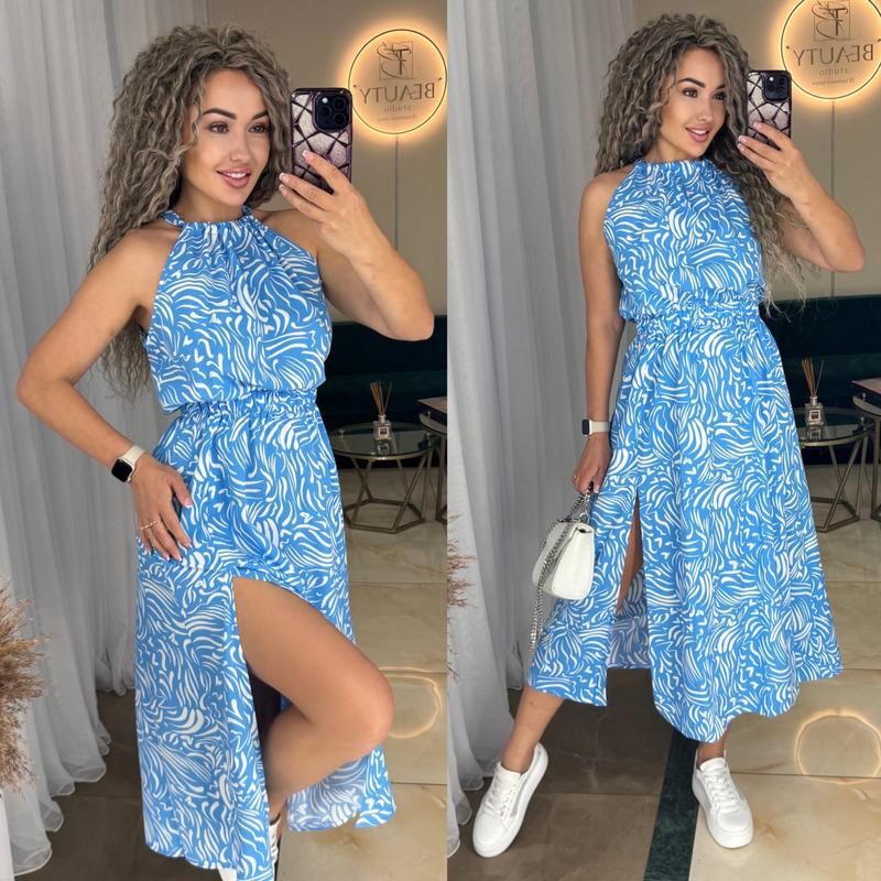 Сарафан арт. pani. 464 Ткань: евро софт Цвет: голубой, белый Размеры: S, M, L, ХL, 2ХL Стильный сарафан миди длины. Модель с резинкой на талии, приталенного кроя с расклешенной длинной юбкой, декорированной разрезами. Замеры указаны на параметры.
