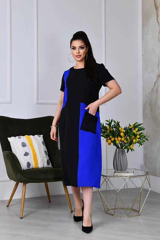 размер 1 черный+ синий цвет 💙🖤 полуобъем груди 52 см полуобъём бедер 68 см свободный крой ✨ длина изделия 120 см