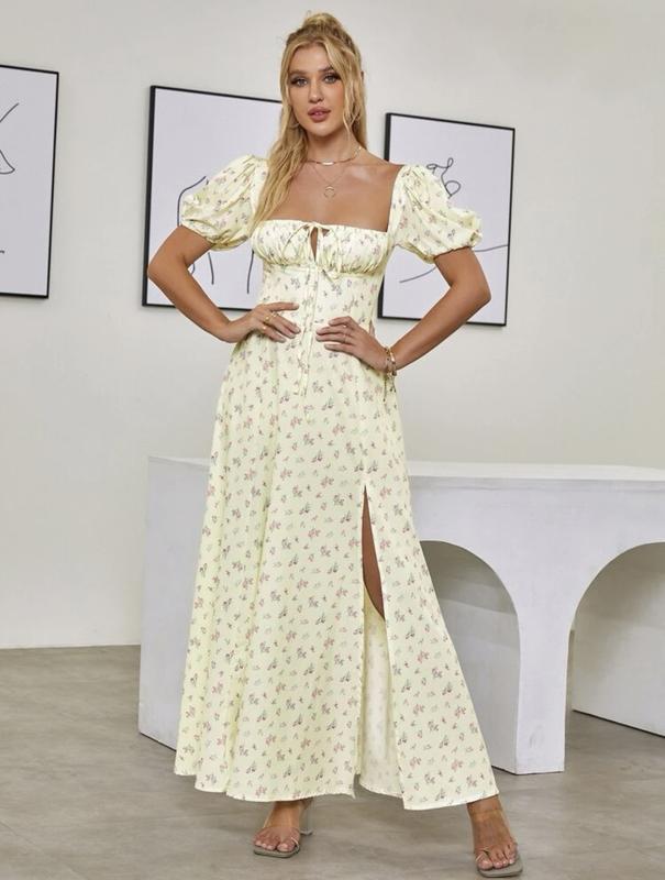 Невероятно красивое длинное платье, размер S Замеры грудь 90, талия 75, бедра 110 длина 125, цвет нежно желтый в цветочек