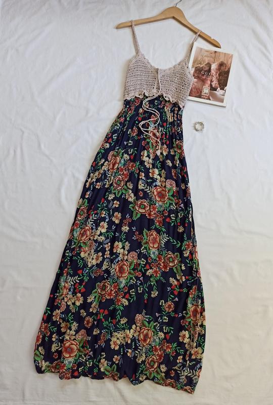 Длинное воздушное платье в цветочный принт с вязаным топом