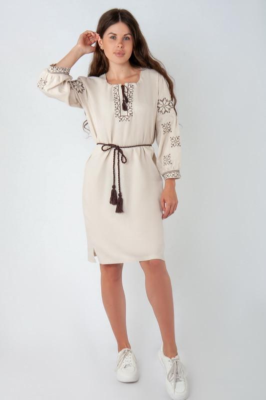 Цена зависит от размера 40р - 1000грн 42р - 1150грн 44р - 1190грн 46р - 1250грн 48р - 1280грн 50р - 1300грн 52р - 1330грн 54р - 1350грн Платье - вышиванка выполнена из полотна "Льон", длина "До колен". Модель имеет удобный и стильный крой, объемные рукава в низу на резинке, пояс и кисточки. Платье украшено красивой вышивкой. Такая вещь отлично подойдет для торжественных событий, встреч и прогулок, ее легко комбинировать с классическими туфлями "Красники", лоферами или кроссовками. Полотно: лляна тканина Состав: 55% лен, 45% вискоза. Вышитый орнамент: машинная вышивка. Советы по уходу: стирать при температуре не более 30°C. Разрешается стирка в режиме "ручная" или "деликатная", вышивку гладить только с изнанки. Изделие может давать незначительную усадку. Платье - вышиванка выполнена из полотна "Льон", длина "До колен". Модель имеет удобный и стильный крой, объемные рукава в низу на резинке, пояс и кисточки. Платье украшено красивой вышивкой. Такая вещь отлично подойдет для торжественных событий, встреч и прогулок, ее легко комбинировать с классическими туфлями "Красники", лоферами или кроссовками. Полотно: лляна тканина Состав: 55% лен, 45% вискоза. Вышитый орнамент: машинная вышивка. Советы по уходу: стирать при температуре не более 30°C. Разрешается стирка в режиме "ручная" или "деликатная", вышивку гладить только с изнанки. Изделие может давать незначительную усадку.