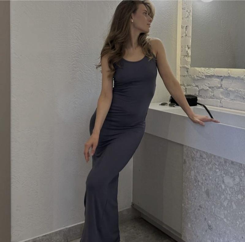 Платье которое подчеркивает фигуру Ткань натуральная вискоза Производный Турция Размер 42-46( one size) Цвет графит Параметры ( хорошо тянется ) ОГ 87-96 ОТ 64-73 Длина 150 см