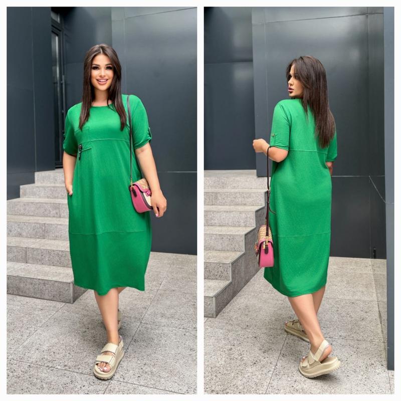 В НАЯВНОСТІ Сукня Мод 048 Ткань: лакоста летняя ( хорошо тянется, не просвечивается) Размеры: 48-50, 52-54, 56-58 Кольори: трава, электрик, беж, хаки. Замеры Платье свободным кроем, есть боковые карманы. ********** ********** Длина 110 см мару 790.00 грн