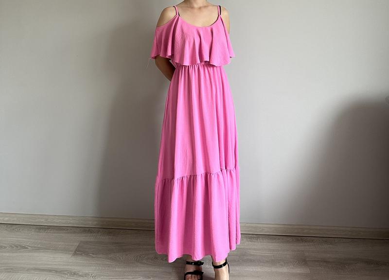 Очень красивое платье. На фото одето на рост 165 см, размер S, но она идеально подойдет и на размер М.