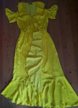 Красивое платье желтого цвета с асимметричной юбкой и спущенными рукавами отличается своим уникальным дизайном. Спущенные рукава добавляют образу романтичности и утонченности, подчеркивая нежность плеч. Яркий желтый цвет придает платья энергичности и свежести, делая ее идеальной для летних вечеринок и праздничных мероприятий. Асимметричная юбка на подкладке добавляет динамики и утонченности. Она подчеркивает фигуру и создает легкий, грациозный силуэт. Мягкая, приятная на ощупь ткань обеспечивает комфорт в течение всего дня, позволяя вам чувствовать себя свободно и уверенно. Сзади имеет несколько небольших чесночных пятен, которых вообще не видно (последнее фото), в цене учтены. Длина около 126 см.