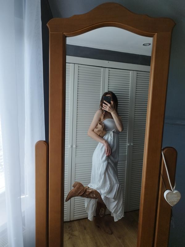 Очень красивое и стильное платье в бохо стиле на лето. Длинные завязки, можно завязывать так, как вам нравится. Стан - идеальный, натуральная ткань. Тянется, поэтому подойдет от xs до m. Не просвечивает, есть подюпник. Мой рост 164 см. обувь также в продаже