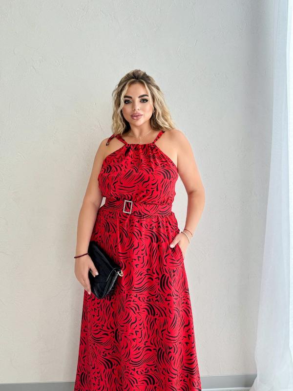 Тканина- шовковистий софт, приємна, легка, дихаюча тканина Розміри 48-52, 54- 58 Кольри: зелений принт, червоний принт, мокко принт Сукня довга, має дві кишені, має з боку розріз Заміри Довжина 145 см Ог110/125 От до 115/до 130 Бедра: Вільно е рош