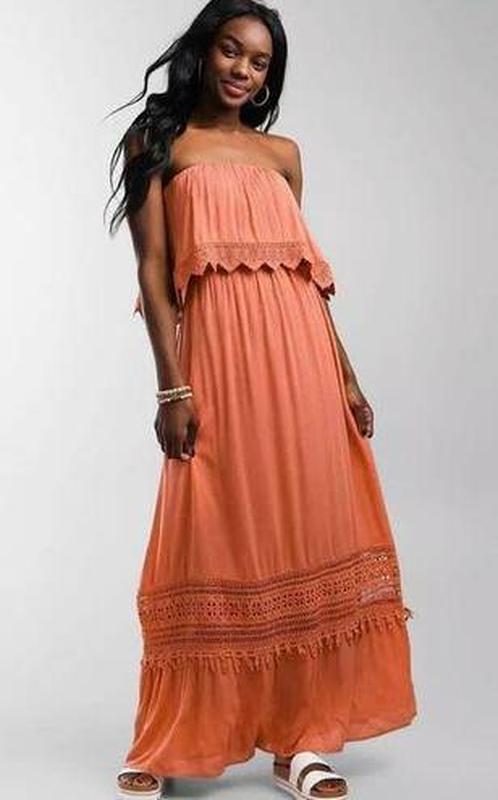 Летнее Платье макси открытые плечики с оборками вставками из прошвы ярусный подол от Forever21 молодежная линия от H&M размер S длина 107 см ПОГ 27 см резинка до 54 см ПОТ 27 см резинка до 52 см ПОБ 52 см цвет терракотовый.насыщенный 50% вискоза 50% полиэстер, мягкая, комфортная ткань жатка - муслин не осветляет.очень приятная тактильно ІДЕАЛЬНОГО СТАНУ