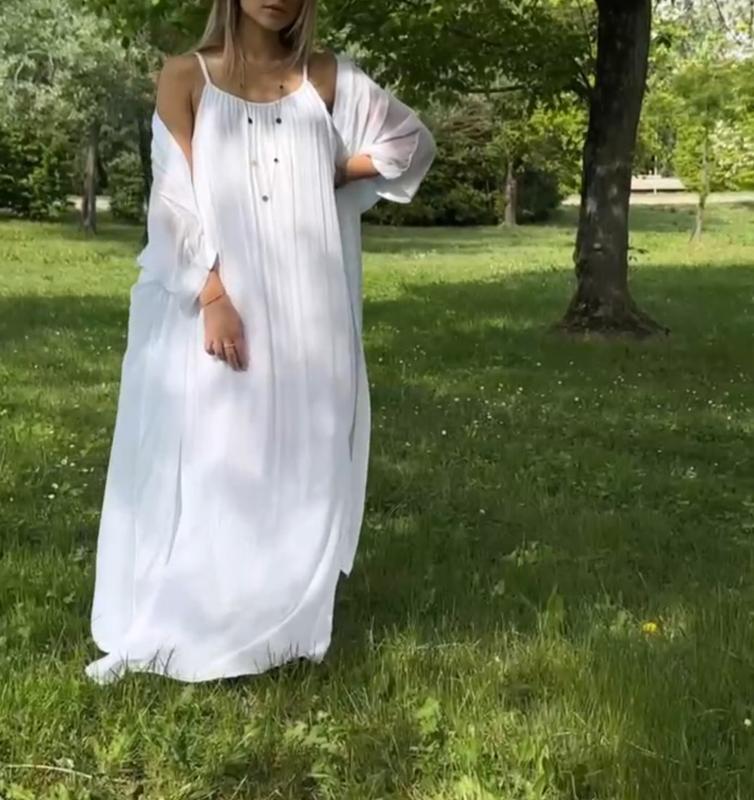 Комплект сукня+накидка. Цвета: молоко, черный, серый, мокко. Размер: универсальный. Ткань: шифон + трикотажная подкладка. Бретельки регулируются. Сукня О г 105 Об б 124 Дл и 125 Накидка О г 150 Об б 150 Дл и 125 Дл р 48