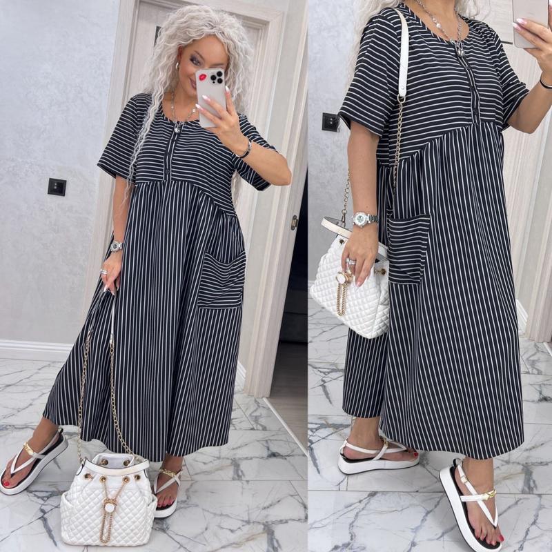 ⚡️Сукня в смужку Модель 134 🖤Цена:1260грн ✅Размер: 48-50, 52-54, 56-58 Тканина: супер софт Летнее платье свободного силуэта в стиле бохо, на завышенной талии сборка, по бокам накладные карманы. Легка, невагома, тканина не парить.