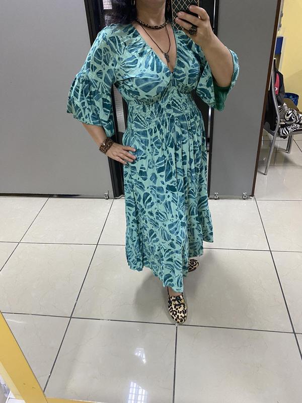 Невесомое Итальянское платье Расцветка супер Супер оформлено декольте Длина 126 грудь полуобьем 57 тянется хорошо бедра полуобьем 86 рукав от плеча 47 Ткань вискоза