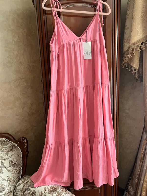 Розовое платье из 100% хлопка. Размер XS, но может быть на S,M