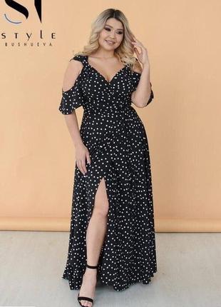 Вечірня сукня Матеріал - софт-шовк, довжина 143см, одягається на запах, перетинками по ліфу можна регулювати декольте. 48-52 - на ОГ 96-105, про до 125 54-58-на ОГ 107-118, про до 135 60-64 - на ОГ 120-130, про до 150 66-70-на ОГ 132-142, про до 170 Розміри: 48-52, 54-58, 60-64, 66-70 ms