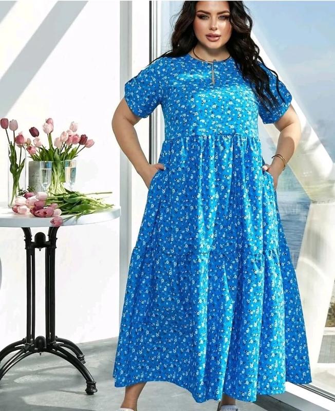Яркое летнее платье. Есть также в красном цвете. Тканина-софт. Легкая и комфортная.
