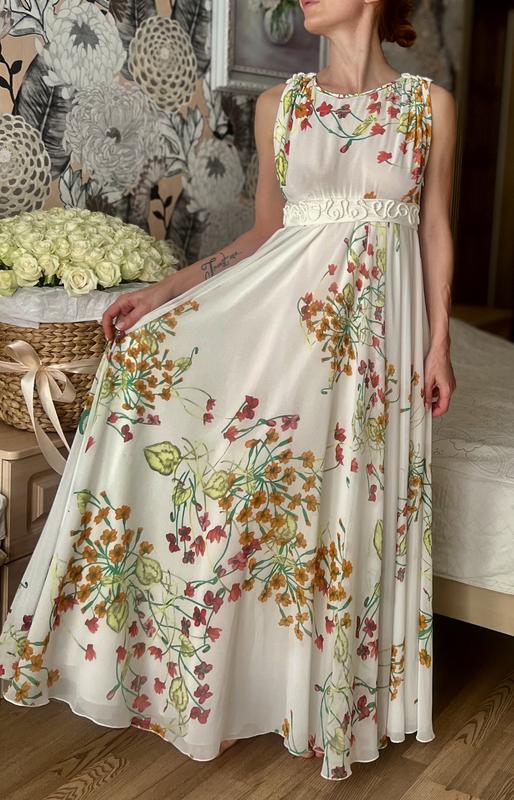 Платье в греческом стиле. Стильизованная кантами в греческих мотивах. Длинная с двумя подъюбниками (фото) Юбки тяжелые, поэтому выглядят очень красиво волнами. Талия высокая. Позаду на ґудзику. Сбоку потайная молния. Без рукав, на плечах стилизована кантом как и пасок. Платье красивое и нарядное. Подойдет даже для подруги невесты и даже для невесты. Размер S. На фото рост 1,65 Купила для отдыха в Египте. Нежный видоузор, качественная крепдешин. Качественный пошив, отделка каждой детали - идеальна. Без недостатков.
